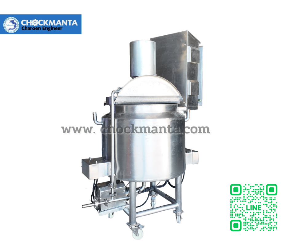 ถังผสมสแตนเลส 3 ชั้น ระบบให้ความร้อน Heater ควบคุมด้วย Inverterเหมาะสำหรับงานผสมของเหลว ของหนืด และวัตถุดิบที่ต้องควบคุมอุณหภูมิ เช่น ช็อกโกแลต ซอส ครีม น้ำเชื่อม และผลิตภัณฑ์อาหารทุกชนิด